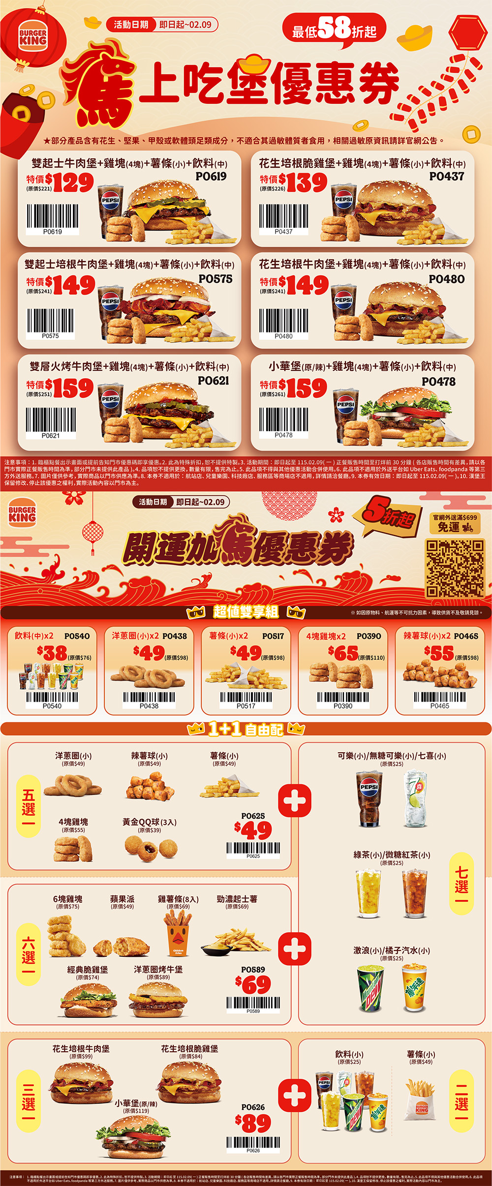 花生培根牛肉堡+雞塊(4塊)+薯條(小)+飲料(中)